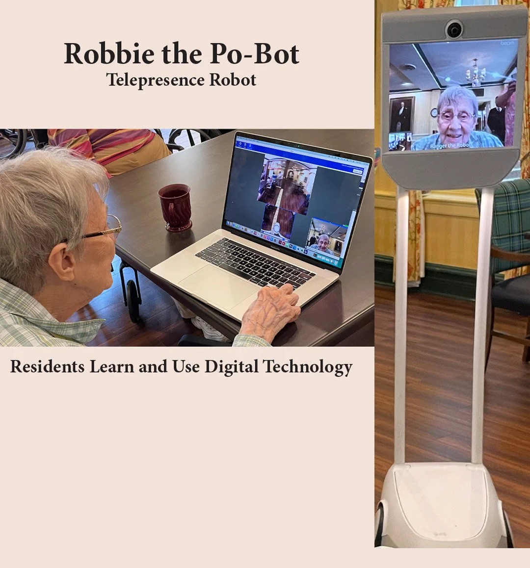 Glazner has pioneered the use of telepresence robots in elder care. At Caledonia Senior Living the residents named the robot, “Robbie the Po-Bot” in honor of Scottish poet, Robert Burns.
